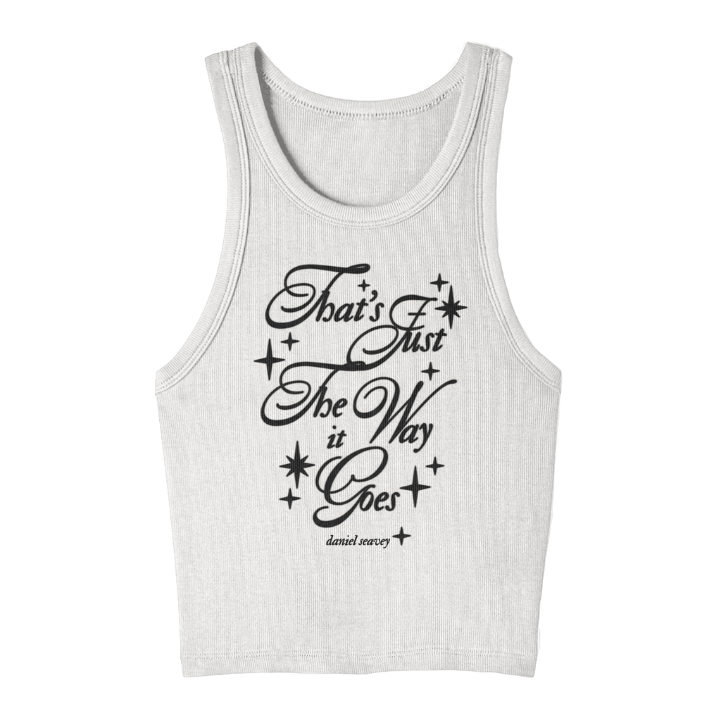 The That's Just The Way It Goes Tank Top features the lyrics from the single "The Older You Get" printed in a script font above Daniel Seavey's name on a ribbed white tank top.